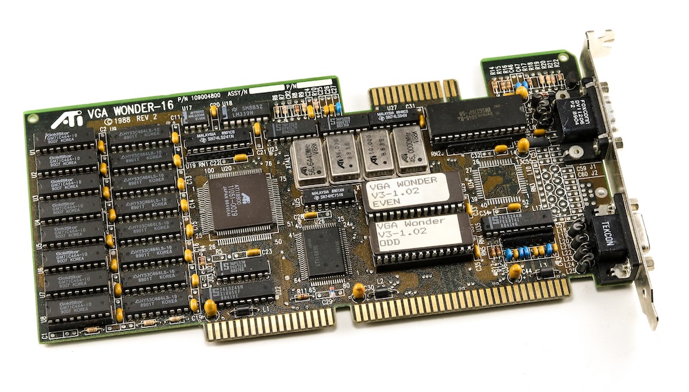 My dad and I would build and upgrade PCs from parts that we scrounged up at local computer expos. These events were typically held in the gymnasium of a local community college where rows and rows of vendors would be set up at folding tables, showing off their wares. Some of these were fancy booths, with vinyl printed signs but most felt more like a flea market with boards and parts thrown in to boxes and milk crates. You’d have to dig through them hoping to find something good like an ATI VGA Wonder graphics card with the bank of expansion memory on the left fully populated.
